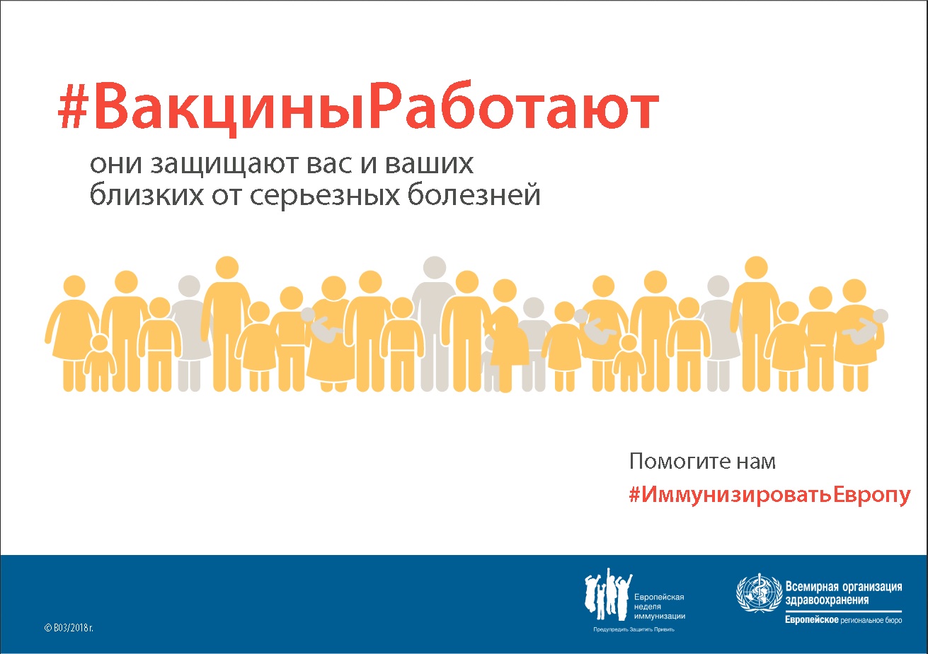 Каждый год в Европейском регионе ВОЗ отмечается Европейская неделя иммунизации (ЕНИ), нацеленная на продвижение вакцинации как ключевого инструмента профилактики заболеваний и сохранения жизней. В 2019 г. кампания по повышению осведомленности людей о преимуществах вакцин пройдет 24–30 апреля и будет посвящена «героям вакцинации» – людям, которые вносят огромный вклад в работу по обеспечению защиты жизней людей с помощью вакцинации.
