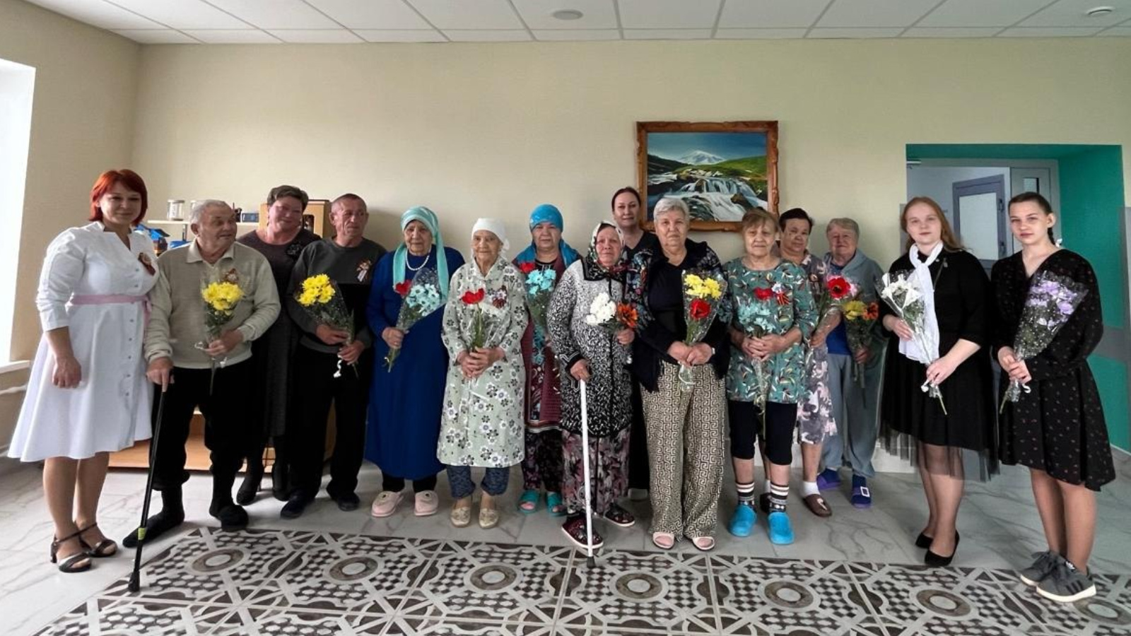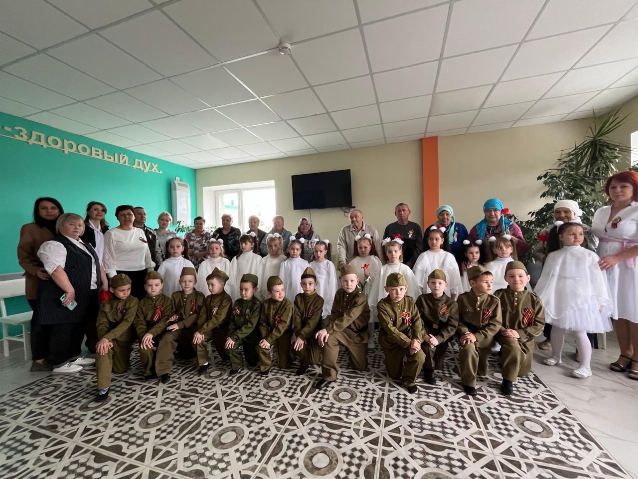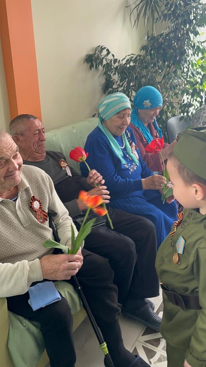 В Шугуровском гериатрическом центре прошло мероприятие, посвящённое 80-летию Великой Победы. С искренним волнением перед пациентами выступили малыши из детского сада "Тургай" — они подарили участникам георгиевские ленточки, как символ памяти и благодарности.