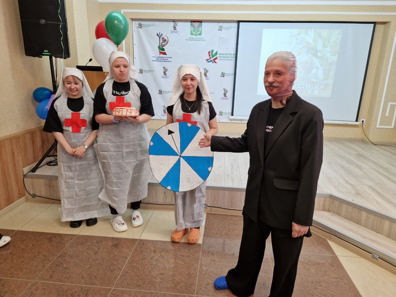 Главными героями праздника стали сами медсёстры — профессиональные, отзывчивые, всегда готовые прийти на помощь. Формат торжества был необычным — Клуб Весёлых и Находчивых. В юмористической игре приняли участие две команды: «Поколение Х» и «Зумеры». В первой собрались опытные медсёстры с богатым профессиональным багажом, во второй — молодые специалисты, только начинающие свой путь в медицине.