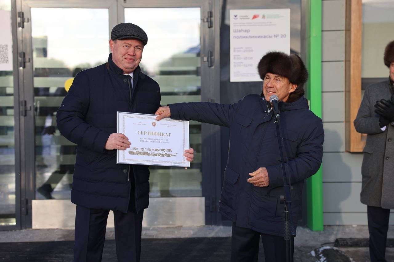 Раис Татарстана Рустам Минниханов передал сертификаты на 9 автомобилей скорой медицинской помощи класса «В», которые направятся в разные районы для усиления службы экстренной медицинской помощи.