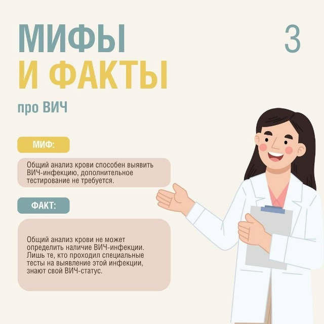 Единственный способ узнать свой статус — пройти тест. ВИЧ может годами не давать симптомов, поэтому регулярное тестирование — основа безопасности. Не позволяйте мифам управлять вашей жизнью и отношением к другим. Начните с правды — и поддержите тех, кто рядом.