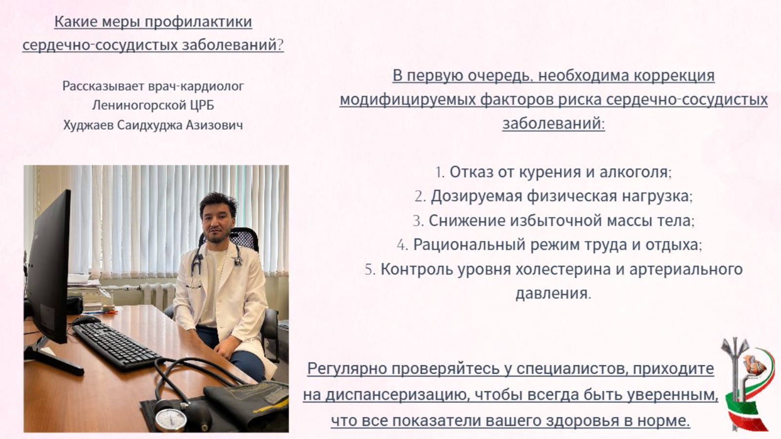 В рамках недели осведомлённости о заболеваниях сердца, говорим с врачом-кардиологом Лениногорской ЦРБ: