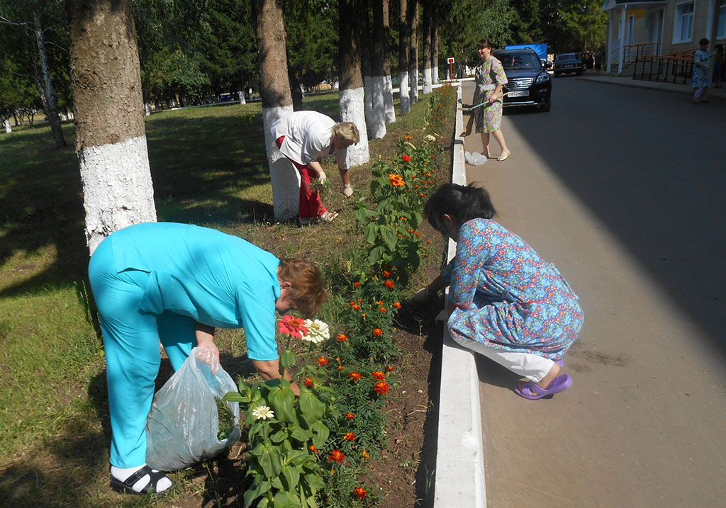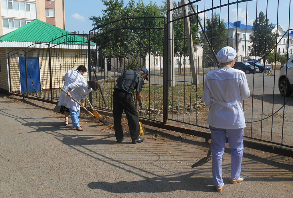 3 - 4 августа коллектив ГАУЗ "Лениногорская ЦРБ" в масштабе города, принял участие в "санитарном дне" по очистке и уборке прилегающей территории Центральной районной больницы.